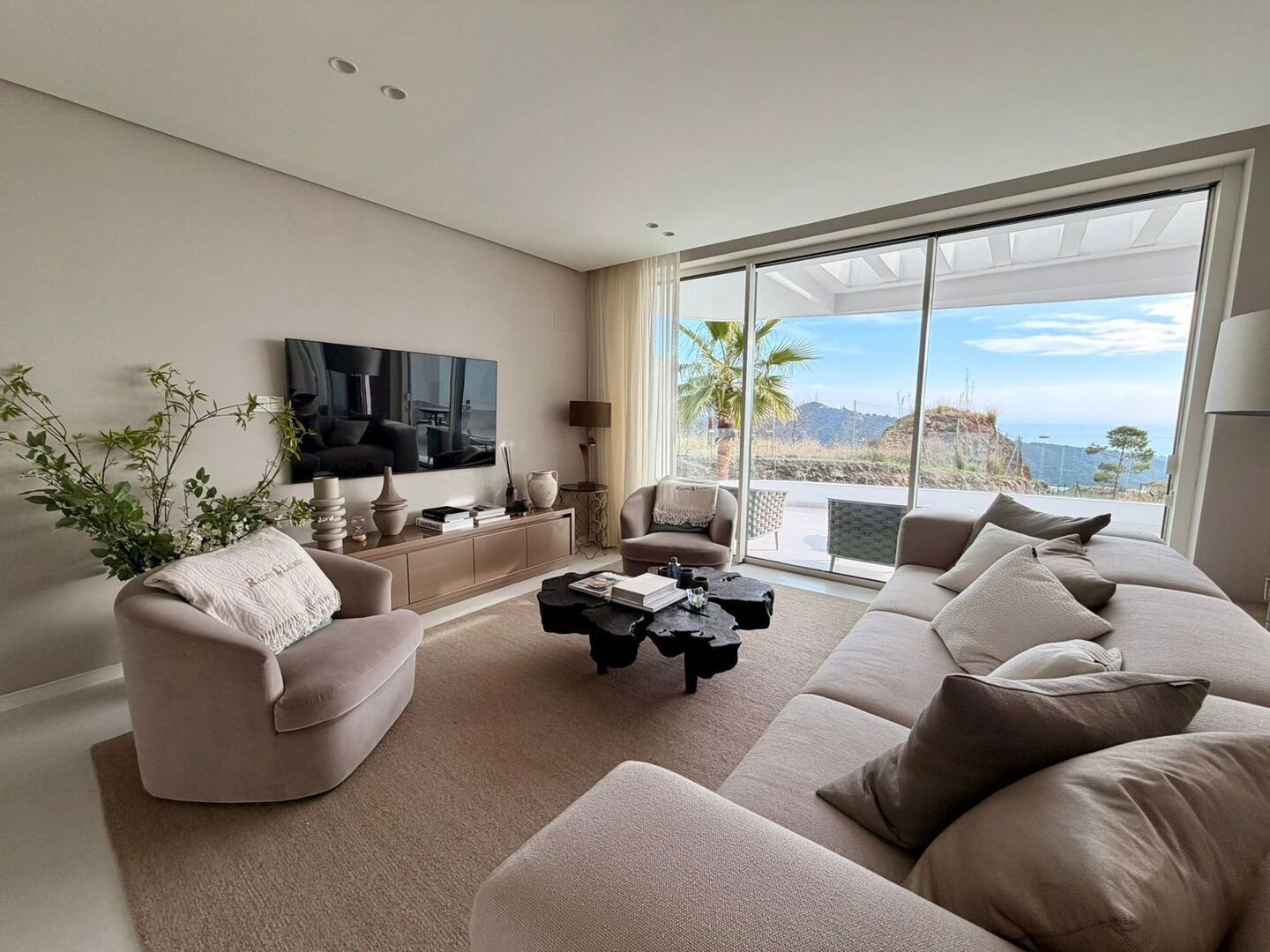 De hoofdslaapkamer is voorzien van inbouwkasten en een en-suite badkamer, terwijl de tweede slaapkamer ideaal is voor gasten of familie. Het interieur combineert hoogwaardige Porcelanosa-afwerkingen met meubilair en design van Minotti, waardoor een verfijnde, elegante en tijdloze leefruimte is gecreëerd.